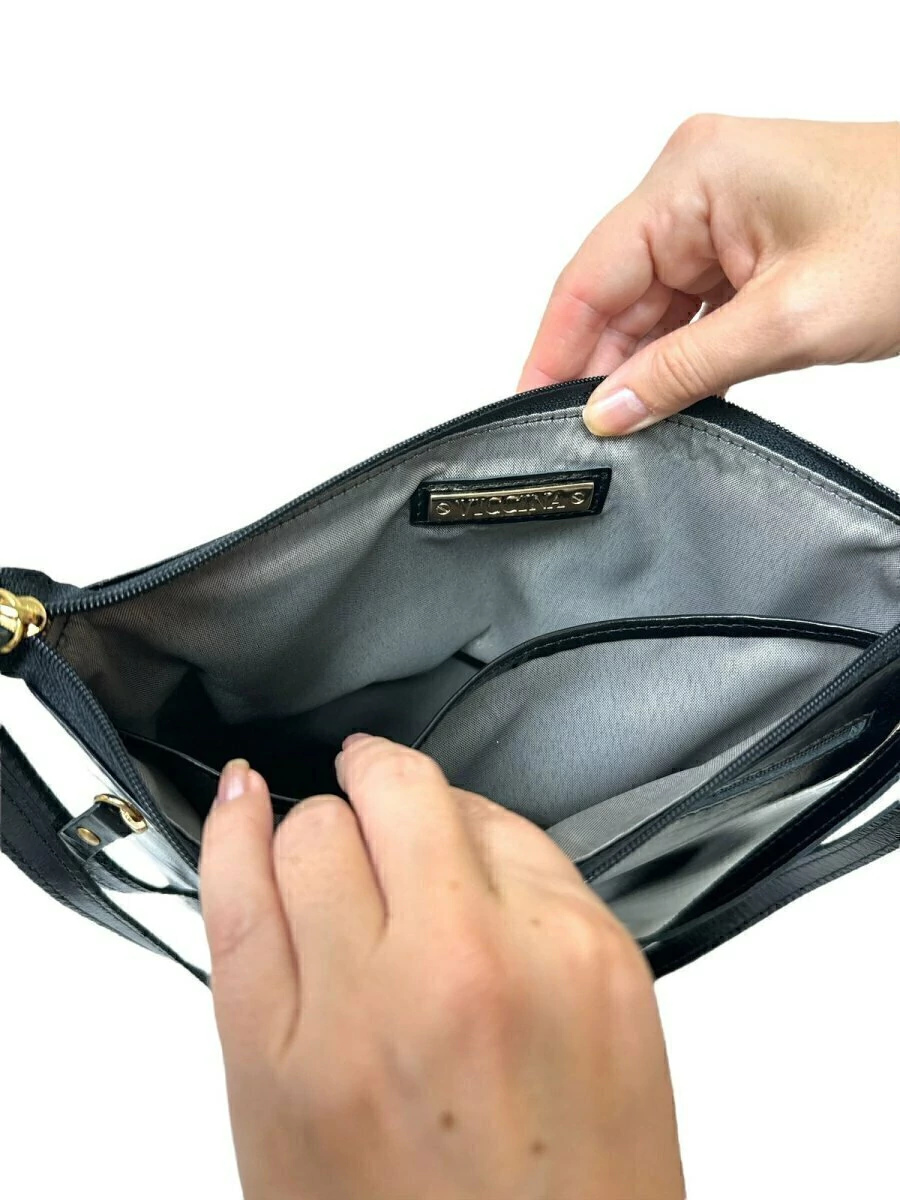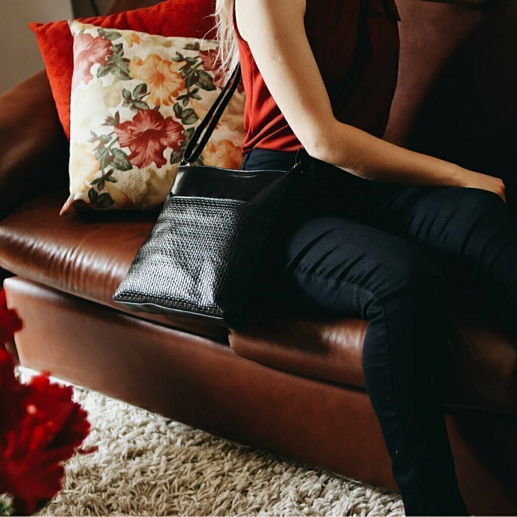 Produzida em Couro, material leve, com toque macio e impermeável.