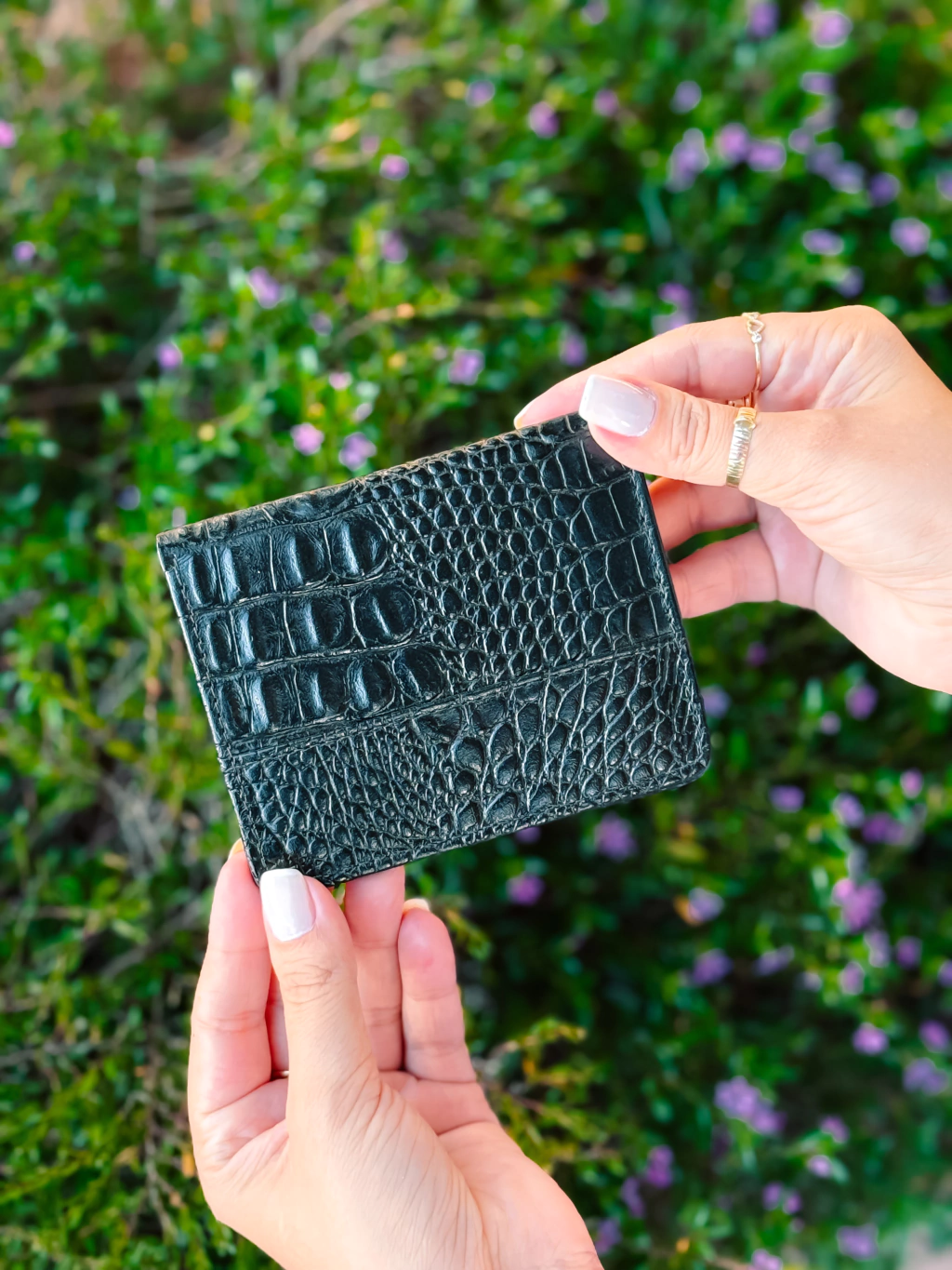 É a escolha ideal para quem busca um acessório que una estilo e funcionalidade, com um toque de ousadia sofisticada. A textura croco adiciona personalidade à composição, tornando a carteira um destaque mesmo nos momentos mais simples.