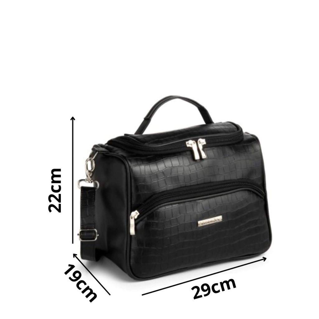 A Frasqueira Croco é ideal para transportar produtos de higiene, maquiagens, eletroportáteis e acessórios. Super versátil, ela também é uma ótima opção para carregar algumas peças de roupas leves e até mesmo um calçado, seja para a academia ou um plantão.