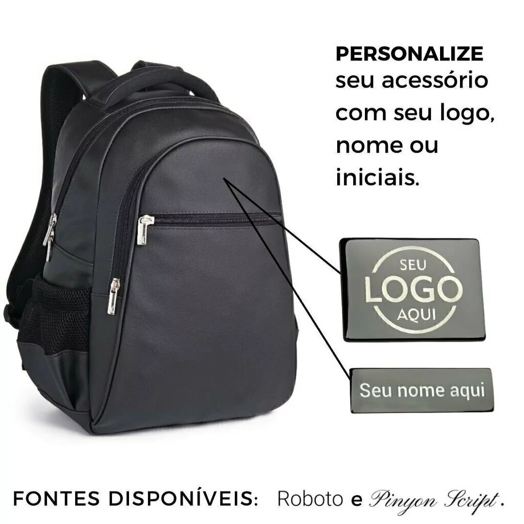 Esta mochila pode ser personalizada, através de uma plaquinha de metal, no carrossel de imagens do produto você pode verificar onde ela será fixada . Você pode gravar seu logotipo, nome, frase ou iniciais e deixar seu acessório ainda mais exclusivo!